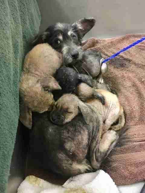 Poor Heidi was sick and weak herself, but she still did everything she could to comfort her puppies and keep them safe. The shelter knew the little family needed specialized help and care, so they reached out to Dallas DogRRR to see if the rescue could take them in.
