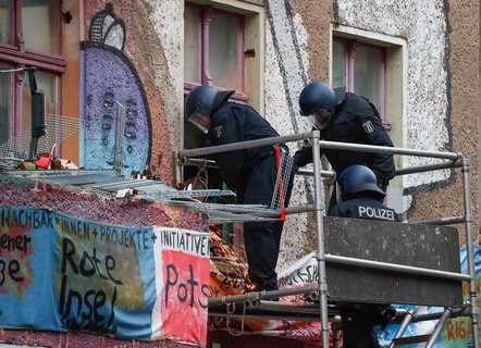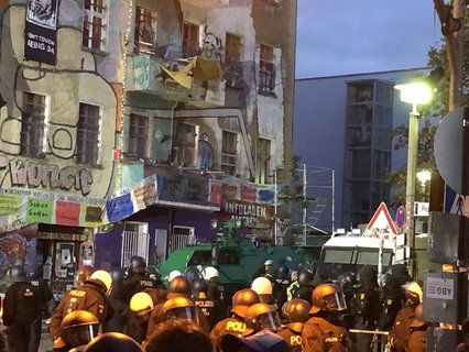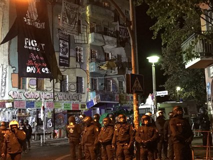 Die Polizei ist im Großeinsatz mit Tausenden Beamten und Unterstützung aus anderen Bundesländern. Das Haus ist eines der letzten linksradikalen Symbolprojekte in Berlin. Im Internet wird seit längerem zum gewaltsamen Widerstand gegen die Räumung aufgerufen. In den vergangenen Tagen gab es eine Serie von linksextremen Brandanschlägen und anderen Zerstörungen sowie entsprechende Bekennerschreiben.