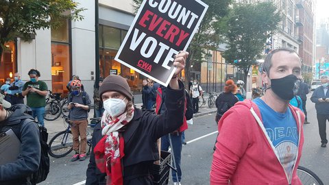 „Wenn Sie die legalen Stimmen zählen, gewinne ich“, sagte Trump. Nicht aber, wenn man die illegalen Stimmen zähle und solche, die zu spät eingetroffen seien. Den Umfrage-Instituten warf er vor, parteiisch in das Rennen eingegriffen zu haben. Den Wahlvorgang beschreibt er weiter als unfair und kritisiert erneut die Briefwahl. „Sie wollen die Wahl stehlen“, sagte er, ohne Beleg. Experten und Beobachter sehen in den USA bislang keinen Hinweis auf Wahlbetrug. (mehr dazu unten im Newsblog).