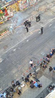 Die Rigaer Straße sowie umliegende Kreuzungen waren am Morgen weiträumig abgesperrt. Die Bewohner aus der linksradikalen Szene hatten über das Internet angekündigt, den Brandschutzprüfer einzulassen, allerdings nicht die Polizei. Diese ist mit rund 350 Kräften im Einsatz. (Die aktuellen Entwicklungen im Newsblog)